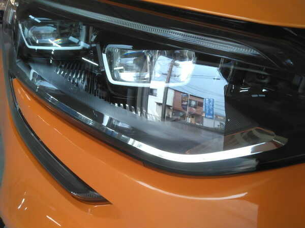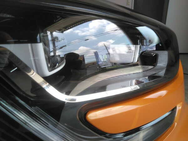 ヘッドライトの劣化を防止するため、プロテクションフィルムの施工です。