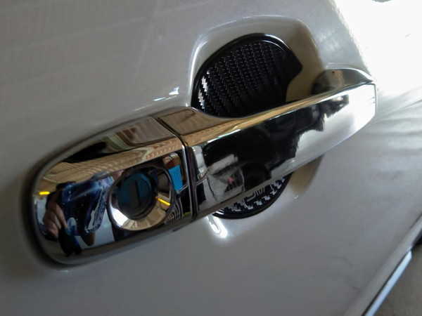 メッキパーツがドアミラーのカバーやドアノブ、フロントグリルなど多数使用されているため、メッキ部分もコーティング施工です。