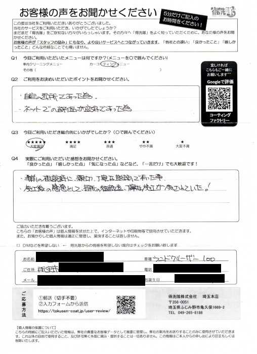 また、大変満足の高評価もいただき、感謝いたします。