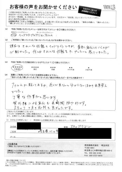 幌のコーティングだけでなく、ヘッドライトのコーティングなどでも、福島県よりご利用いただけるお客さまがいらっしゃいます。