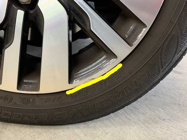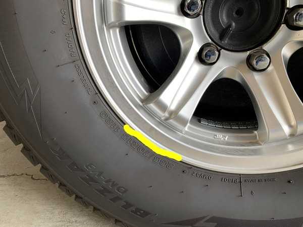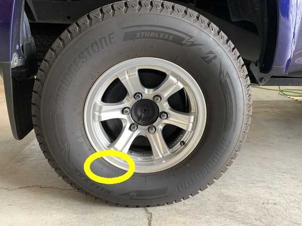 こちらのタイヤは、写真の黄色い丸部分に記載されています。