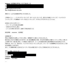 そのため、ボディのコーティングをご利用のお客様はメンテナスと一緒にご利用いただくお客様がほとんどです。